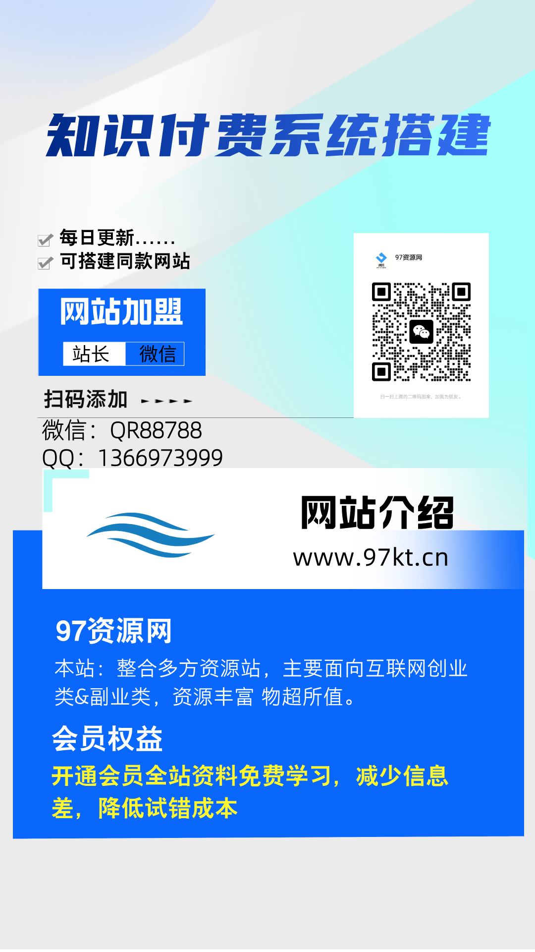 加盟XXX网创,加盟搭建同款知识付费资源网站,实现长期稳定被动收入~